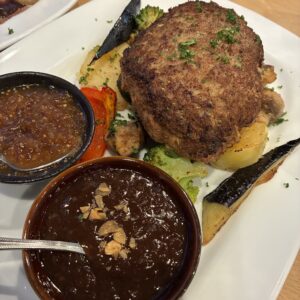 それと、『黒毛和牛入り自家製ハンバーグ(300g)2種類のソース付き』(1480円)ハンバーグはグラムを指定できるので