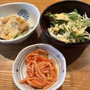 小鉢がこんなについて、ご飯も少なめにしてもらったけど多い〜