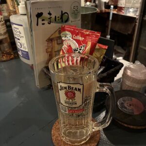 お食事は無いけれど、100円〜おつまみやカッパえびせんなどのお菓子も置いてあります😆