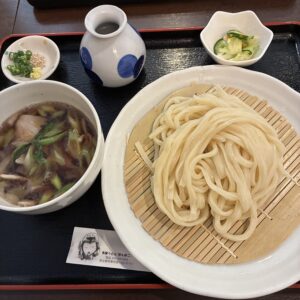 母は豚肉と春菊の香りが良い『つけ汁うどん(850円)』。
