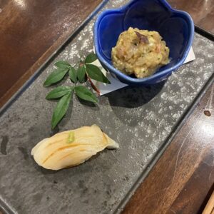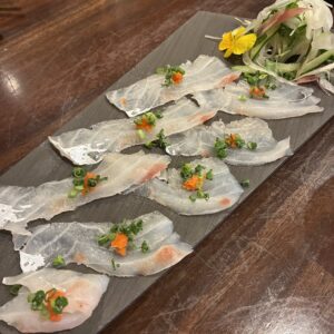 まずは、その真鯛が美味しくて『真鯛の薄造り(900円)』をお願いし、大好きな『えび真丈(1つ600円)』を2つ。