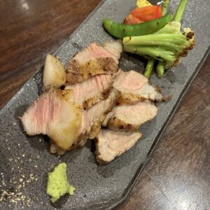 そして、肉好きの真栄くんが選んだのは、神奈川のブランド豚で、特に美味しい肩ロースを使用しワサビと塩でいただく『みやじ豚の豚肩ロース(1400円)』。