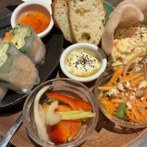 スペイン料理ではなかったけれど、生春巻きや、ハニーチーズ豆腐、ポテトサラダなど、楽しい盛り合わせでした。