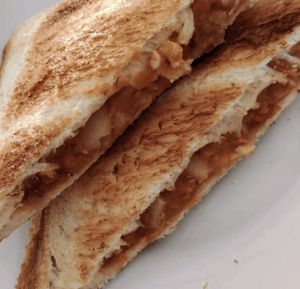 父はワカメうどん😑 とホットサンドイッチ。
