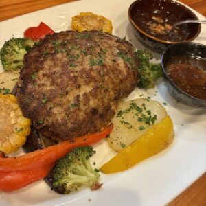 そして、ランチで人気のハンバーグですが、ディナーはグリル野菜と2種類のソース付きで『黒毛和牛入り自家製ハンバーグ300g』を。