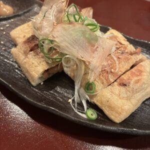 私は納豆が大好きなので、今回は串揚げ(明太子納豆串揚げ、納豆チーズ串揚げとかもあるんですよ〜)ではなく『焼く!油揚げ納豆』と、