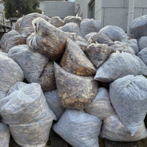 敷地内の落ち葉拾いでした。