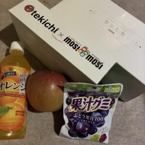 をいただき榊くんにはオレンジジュースをいただき、友達は最近好きな『果汁グミ』を買ってくれて、あきこさんからは、お歳暮として作ったティッシュと高級ティッシュをいただきました